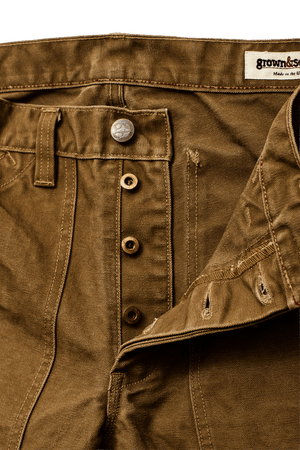 Built with domestically woven 12 oz. State-Side Canvas, each pant is sewn in a small, family-owned factory in San Francisco that has specialized in jeans and workwear for over 35 years. Moving through more than 10 hand-operated sewing machines, each garment is meticulously crafted for durability. After sewing, the pant heads to a washing and finishing facility in Los Angeles, where enzymes and softeners reduce shrinkage and bring out its unique character. A final inspection ensures every pair meets our quality standards, so you can enjoy a pant that’s rugged enough for any job yet versatile enough for everyday wear.