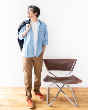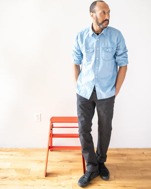 Each Walsh Work Shirt is carefully crafted in a family-owned factory in San Francisco, where they’ve specialized in quality garments for over 35 years. After sewing, it heads to Los Angeles for an enzyme wash that softens the chambray and reduces shrinkage, giving it that broken-in feel from day one.